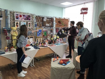Чего только нет на нашей выставке: модели одежды, картины и шары из ткани, куклы, вязаные игрушки, коллажи из природных материалов, макеты и много-много самых разных интересных экспонатов.